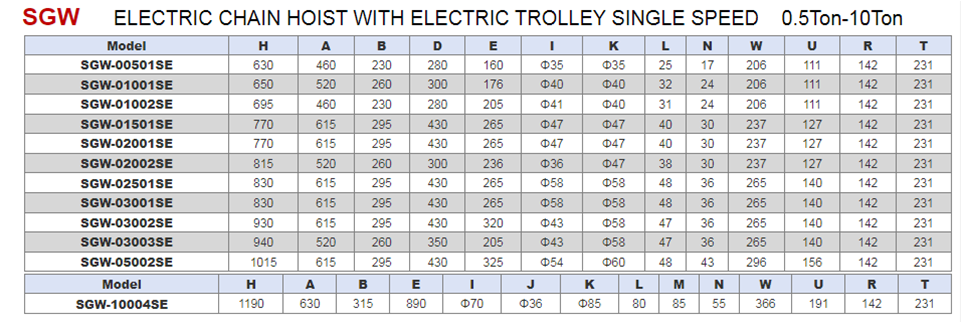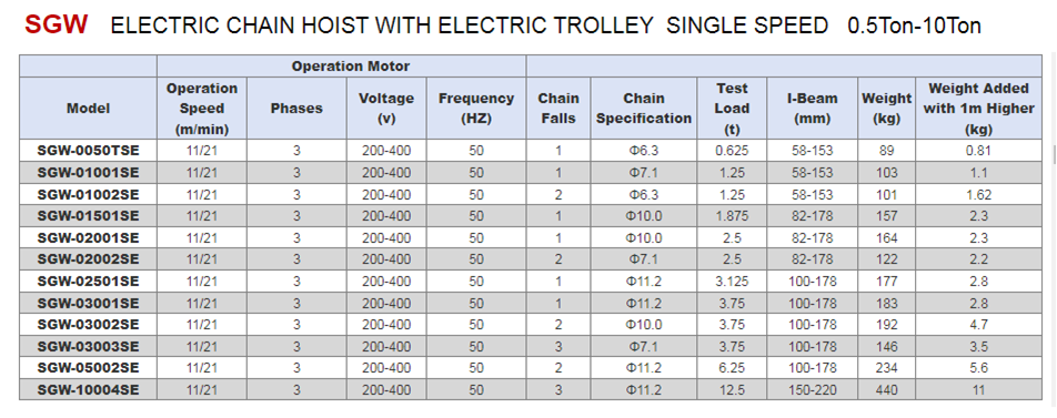 SGW Type Electric Chain Hoist