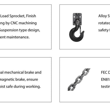 Ultra-High Safety Factor - 8:1/10:1 chain safety ratio (EN818-7 certified chain, 8x break test).